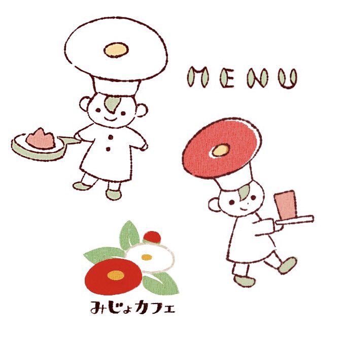 みじょカフェのメニュー表にいる子たちかわいい。赤い椿の子は顔が見えないけど想像で #舞いあがれ #舞いあがれ絵