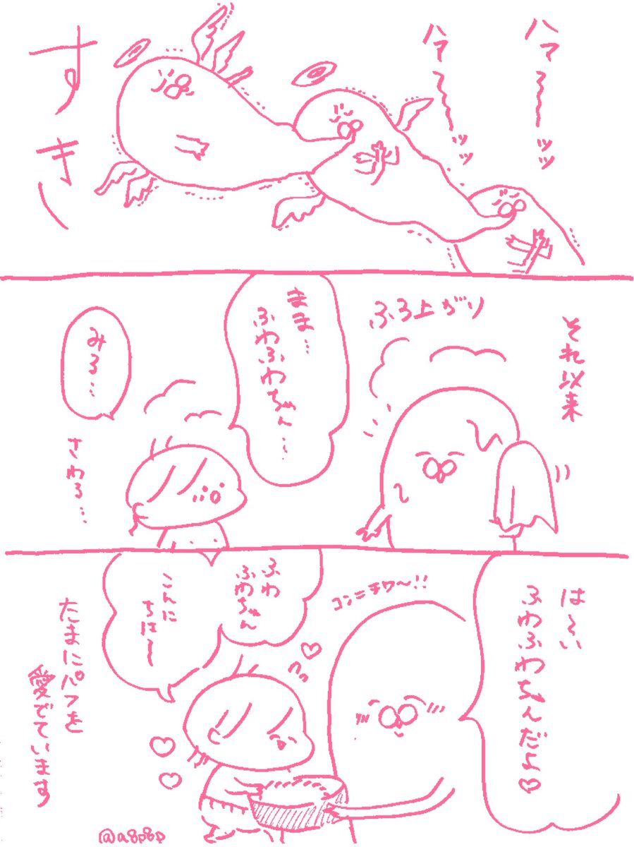娘がパフは生きているって認識し始めたから、パフはいきものです( ˘ω˘ )👌パフ飼ってます( ˘ω˘ )👌可愛すぎて正気を保つのがやっとだったよ!!!!☺️☺️☺️☺️☺️💕 2.3〜2.4才 #のりおとぴこ2さい