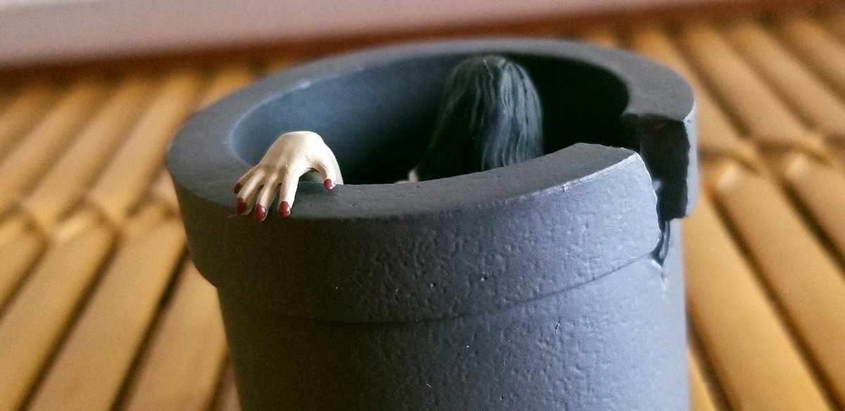 貞子のガチャ発見!めちゃくちゃええやん! 磁石だからいろんなところにくっつけて遊べる。最高 #貞子 #ガチャガチャ #オモ写 #ホラー