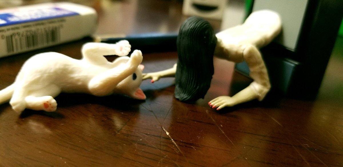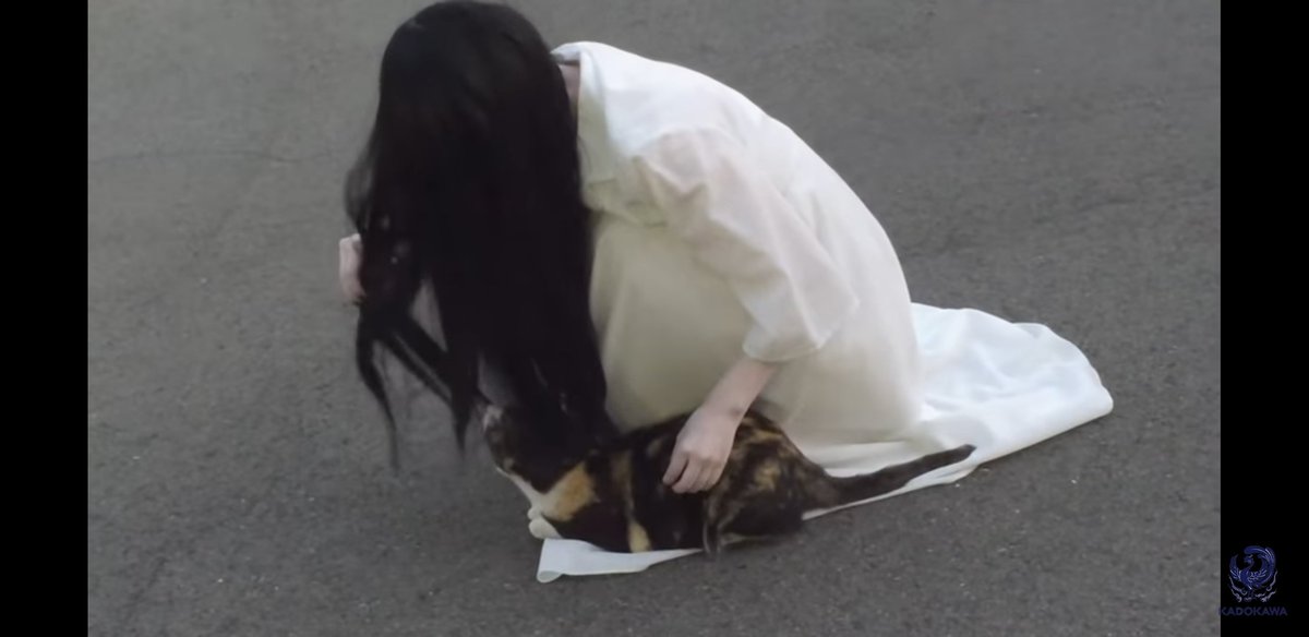 猫とじゃれてる貞子好きです #ホラー #貞子 #オモ写