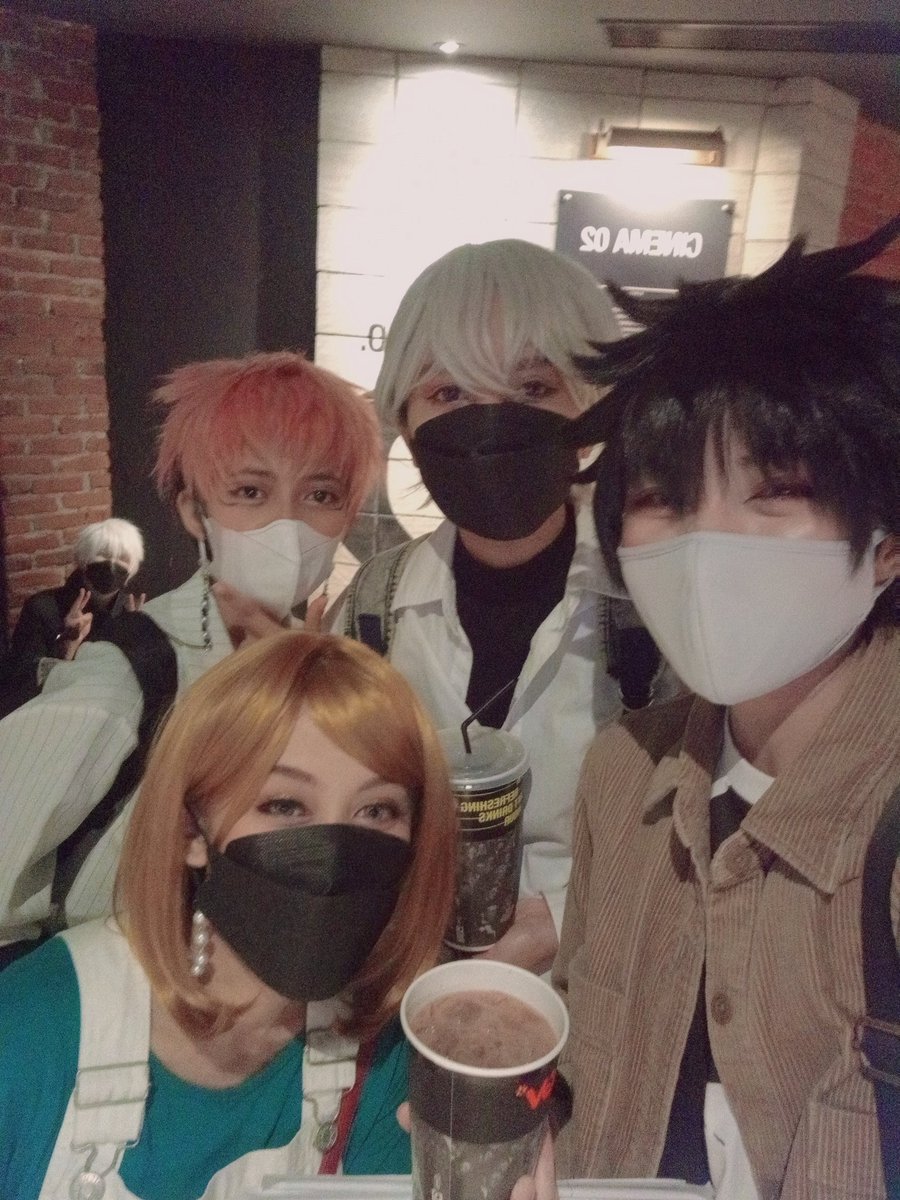 Team 3 + Inumaki -senpai ready to watching JJK0 #JujutsuKaisen #megumifushiguro #nobarakugisaki #Itadoriyuuji #inumakitoge #GojoSatoru #cosplay