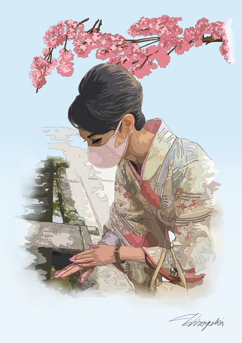 #illust #イラスト #illustlation #artwork #Cat #Dog #絵描きさんと繋がりたい #絵柄が好みって人にフォローされたい 久しぶりに描いてみた やっぱり着物には桜かな?