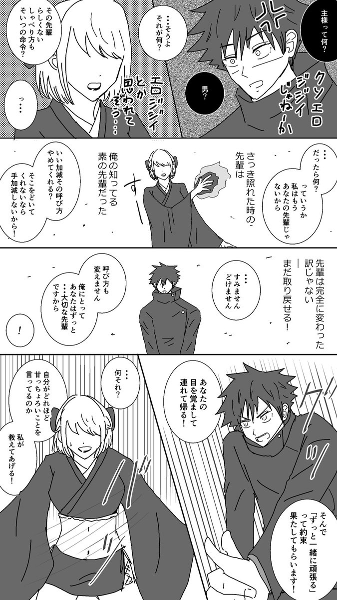 呪i詛i師になった先輩と連れ戻したい伏くん ※夢主います ※2枚目のALTに補足(余談)つき #じゅじゅプラス #じゅじゅぷらす