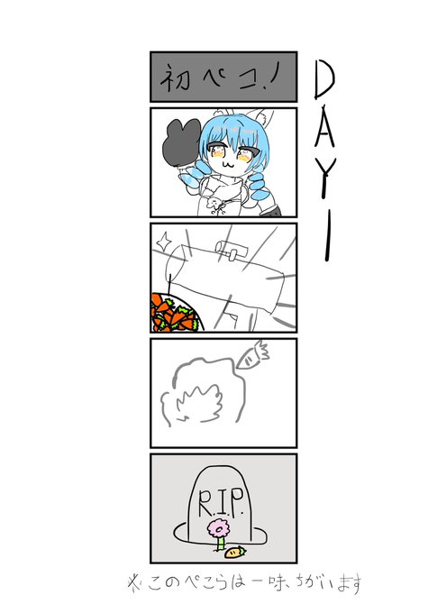 3 8 眠たい時に描いた意味のやからん漫画 【解読】 一コマ目;いぇい! 二コマ目;テッテレー 三コマ目ピューンドーン 四コマ目;チーん #ぺこらーと 23/04/01 22:46