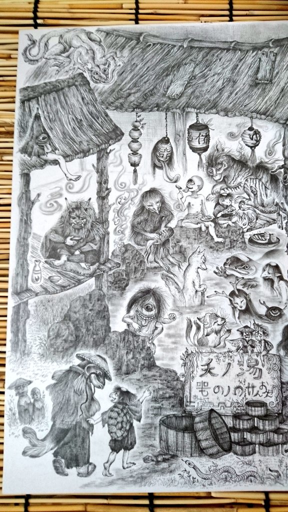 35 245 #妖怪好きは妖怪画像を貼りつつフォローし合う 「妖怪」といっても、河童だらけです。 温泉に行きたい願いも込めて、妖怪の温泉も描きました。(妖怪詰め合わせ温泉)♨️ →続き 21/01/30 13:47