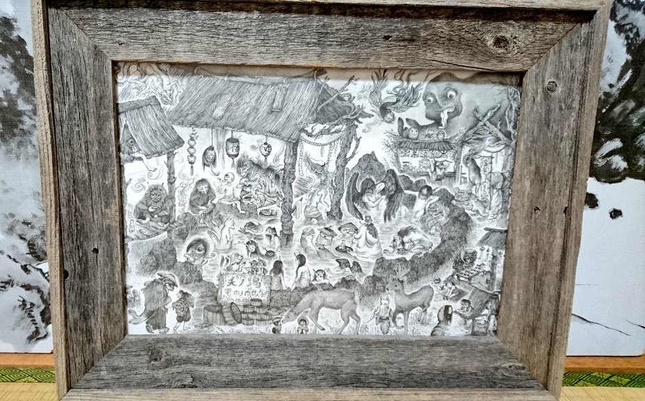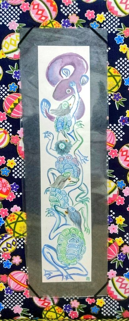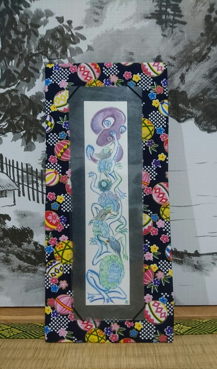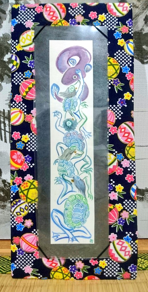 1 11 自分の絵を入れる色紙額を手作りしました。 今年の夏頃に描いた、風変わり河童四兄弟。🌸 #河童 #鰻 #水彩 #色紙額 #和風 #創作 21/12/02 20:45