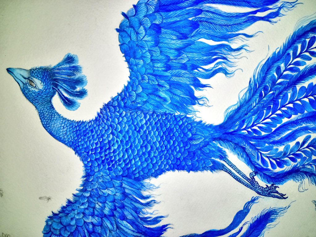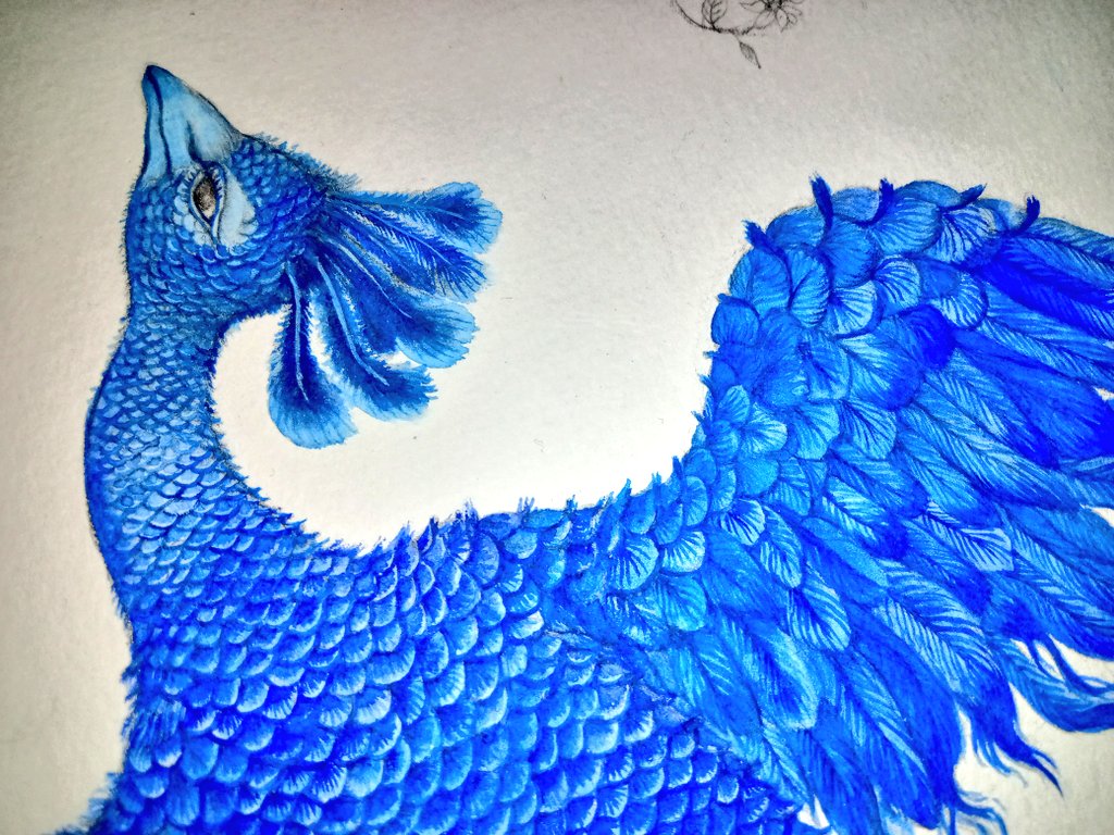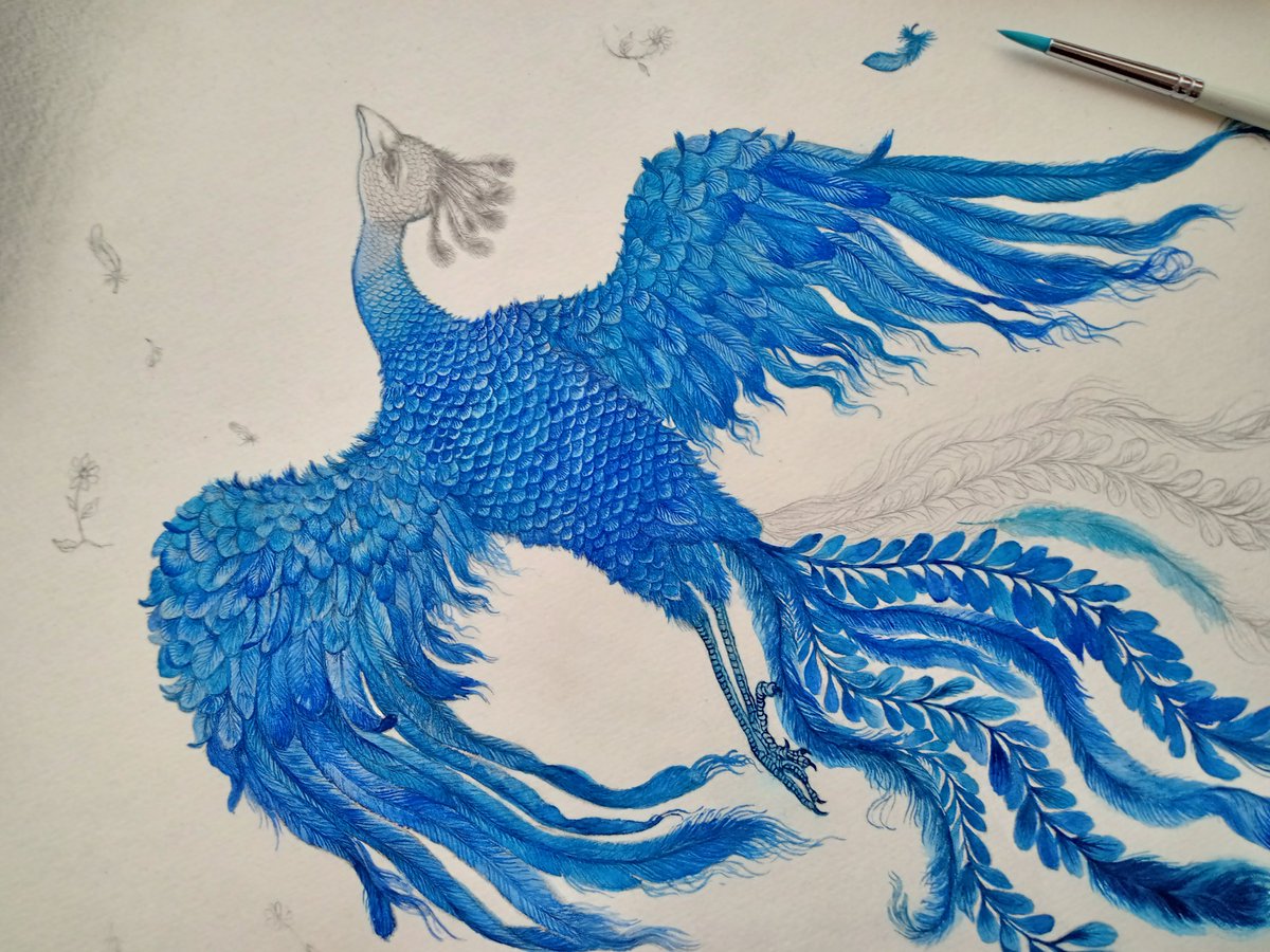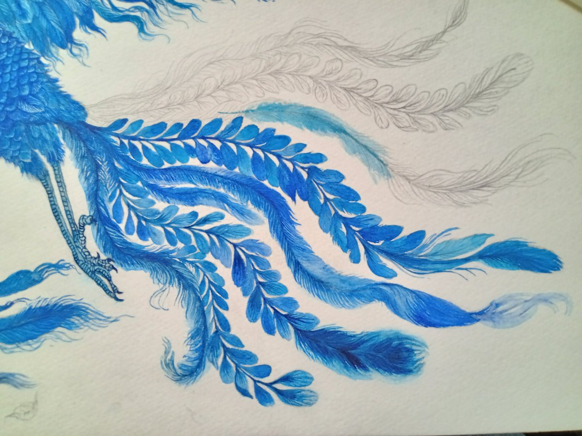 青鳳凰さん進捗です🖌背景は相談です。 #進捗 #鳳凰 #水彩