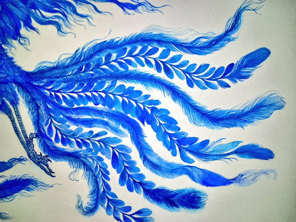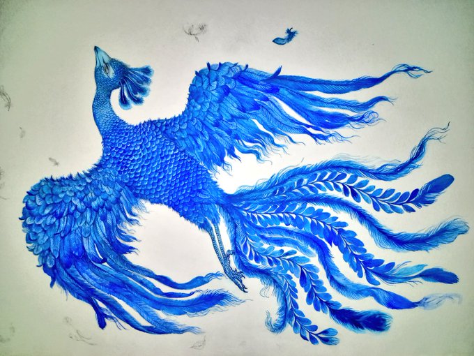 依頼作品の進捗でした🦚🎨 #青い鳳凰 #水彩 #watercolor