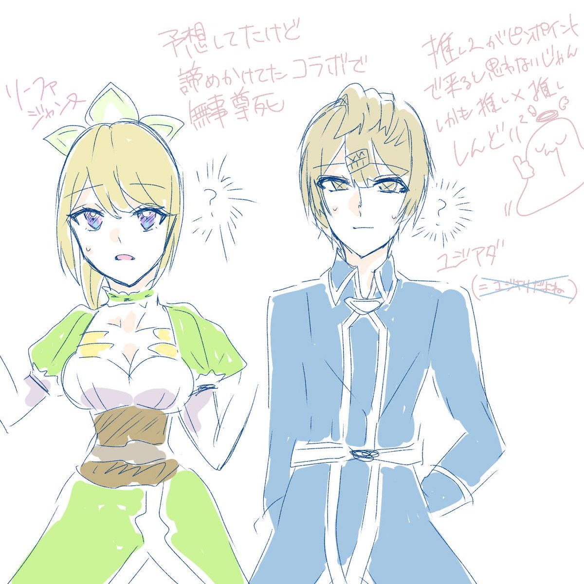 イベラン後からずっと描いてなかったからリハビリアダジャンらくがき……… あとアイビスのポーズ素材めちゃくちゃ良い………🙏😌 #コンパスお絵描き #アダジャン
