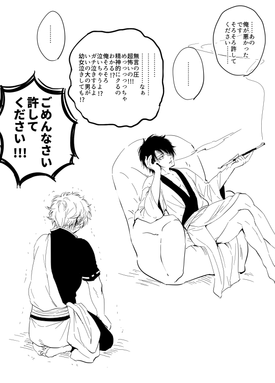 銀ちゃん程正座が似合う男と高杉程女王様座りが似合う男はそうそういないと思う ※銀高