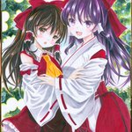 142 518 今週のアナログ絵の成果1 「霊夢と靈夢」(再生産) 新旧博麗の巫女‼️ 23/07/05 20:20