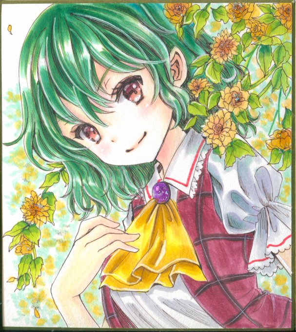 49 165 #7月14日は風見幽香の日 ゆうかりん詰め合わせセットです(´ω`*) アナログ絵2枚、旧作ゆうかりん+寝間着ゆうかりん、そして昨年の幽香の日の絵 23/07/14 19:45