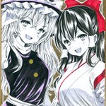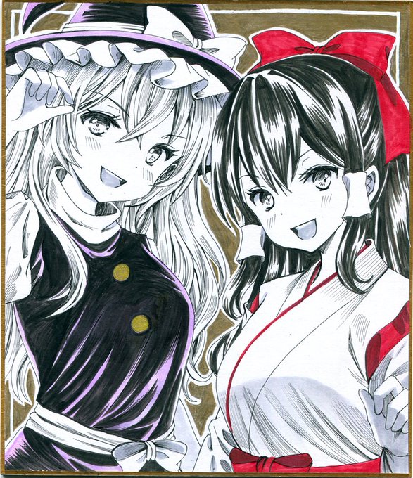 今週のアナログ絵の成果 旧作魔理紗&靈夢描きました‼️旧作マリレイ(´ω`*)