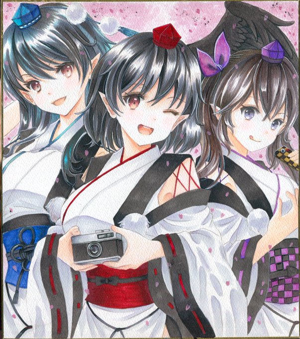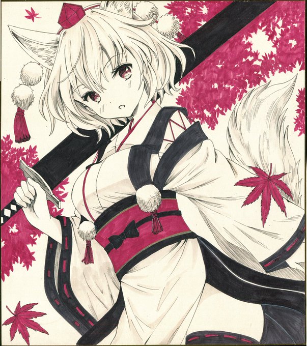 アナログで天狗装束の椛を描きました‼️モミモミモミ…