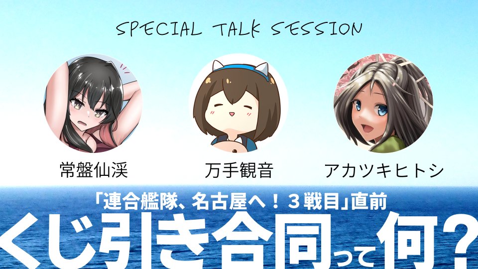 【告知】 ⏱6/12(日)21:00~ #艦隊名古屋 3戦目開催まであと少し! ウワサの合同企画主宰と今をときめく激アツゲストを迎えてスペシャルトーク!! 当日10分前に私のニコ生で配信枠取ります! #くじ引き合同って何 ゲスト(敬称略) 万手観音 (@pokka0801) 常盤仙渓 (@IBARAKIhyakuri)