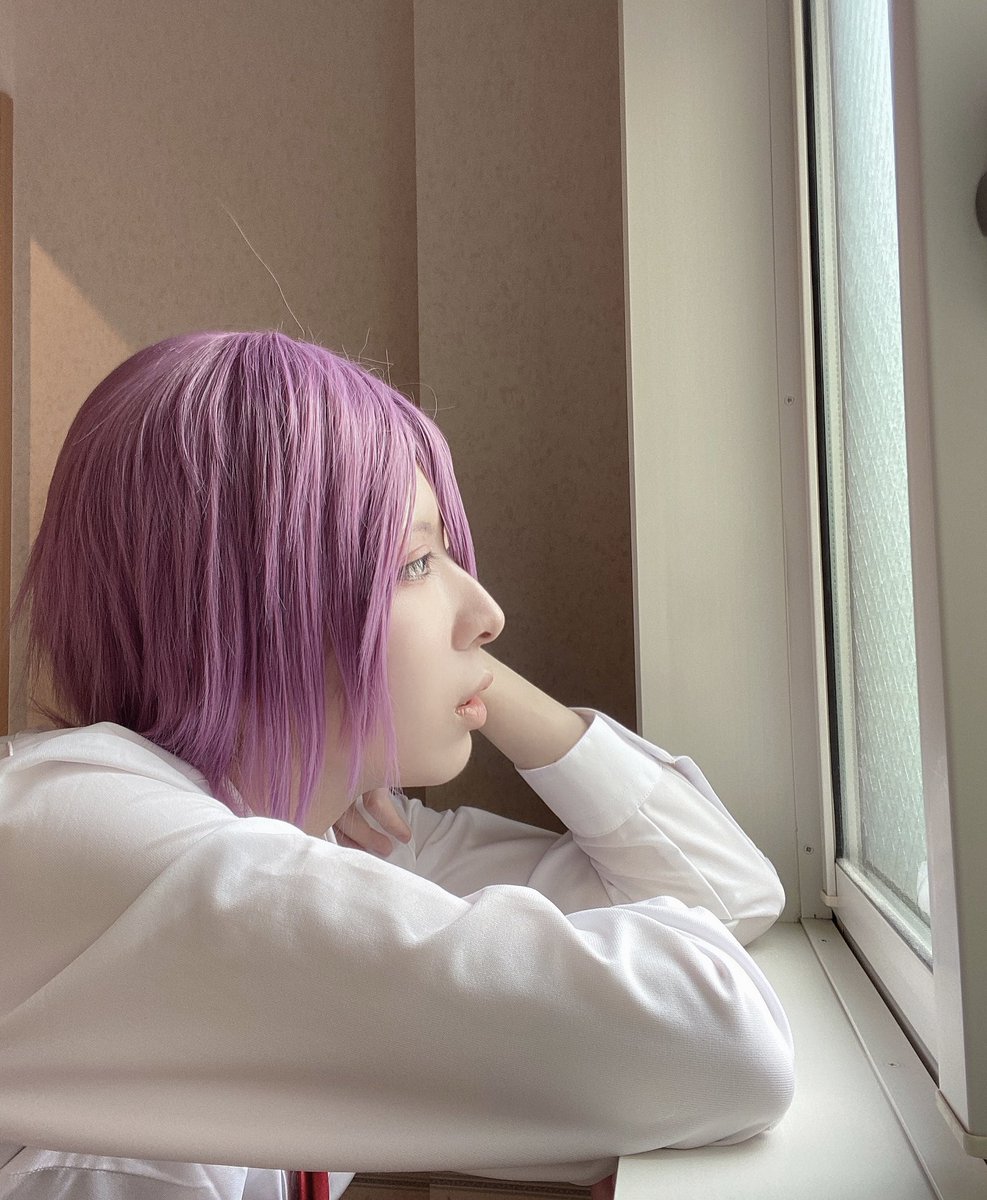 ⚠️宅コス/Cosplay 黒🏀 自然光に感謝。🙏🙏 (お昼休憩時に寝落ちするむっくん)