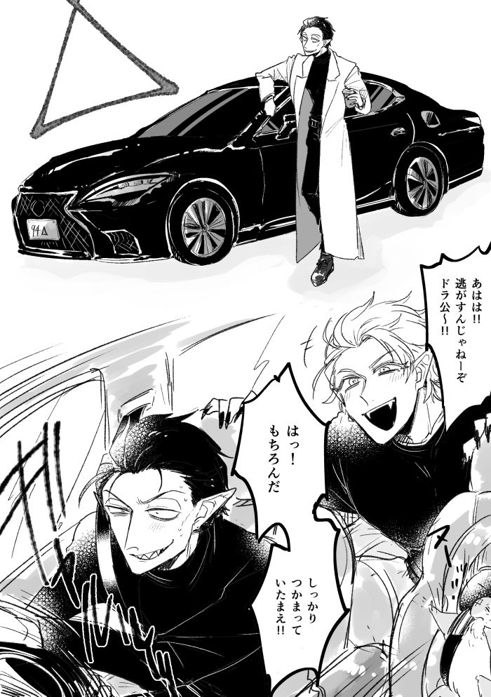 316 2091 隊長カーチェイスしてーーーーーーーッ!!!って妄想らくがきです(Δ) デート中に電話連絡受けてクソ速い高級車でおっかけてくれ~~ 助手席には特別仕様のマジロシートつけててほしい 22/05/08 04:25