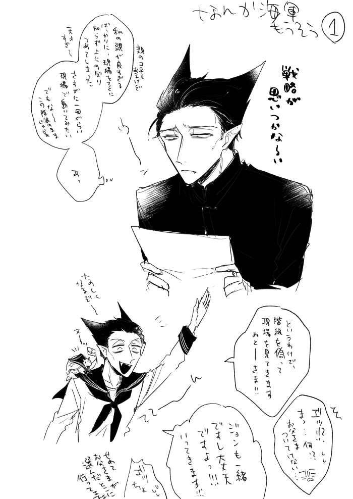 実は偉かった水兵ド妄想らくがき このあとロくんのとこ行って恋に落ちおせっせまでした後突然いなくなりお偉いさんの集まりで会うというロド(雑