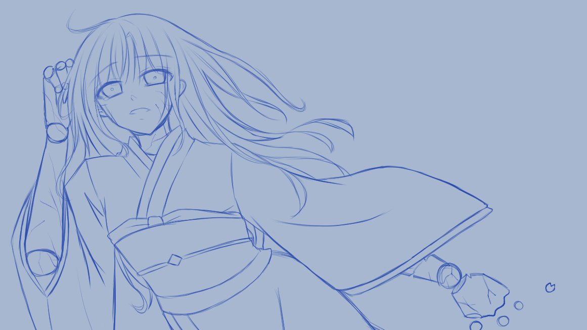 おはようございます\\\\└('ω')」//// 朝方まで、ラフで置いてたイラストの線画を描いてました✨ 楽しい( 人˘ω˘ )✨ これは好きな作品のファンアート...何かわかる方いるかしら...👀 #イラスト #イラスト好きさんと繋がりたい