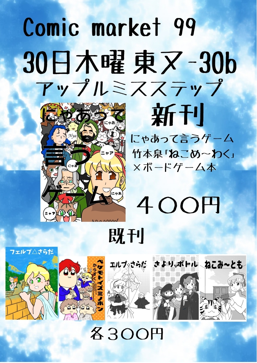 C99おしながき #お品書き #竹本泉 #同人 #MTG #漫画 #コミケ #コミックマーケット #ねこめ~わく #ポプテピピック #C99 pixiv.net/artworks/95104…