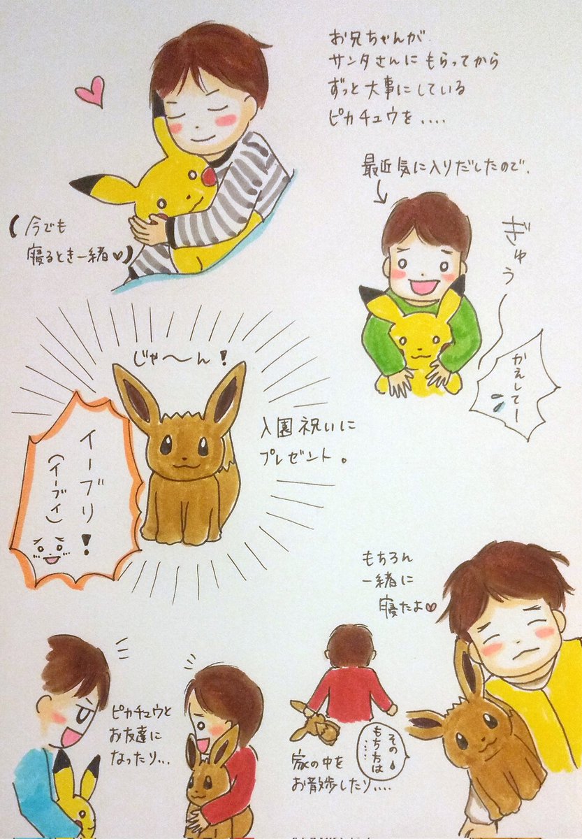 0 9 我が家にイーブイが来た。 (首のモコモコ描くの忘れた!) #育児漫画 #育児絵日記 #3歳 #5歳 22/04/12 23:03