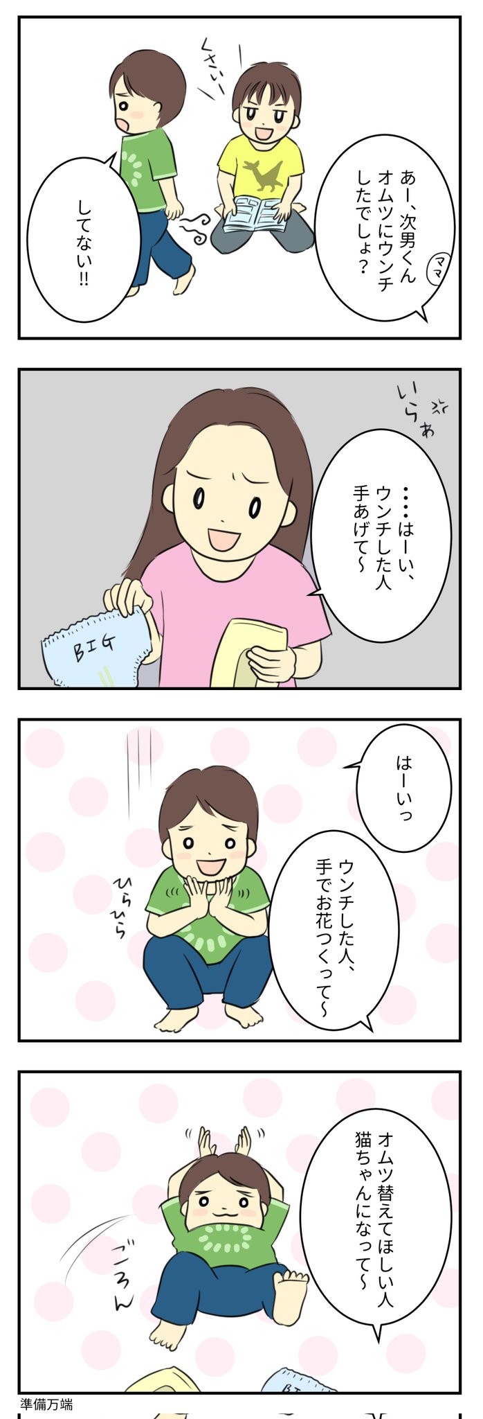 トイトレ進まない3歳半オム替えのイライラを遊んでごまかしている #育児漫画 #育児絵日記 #3歳