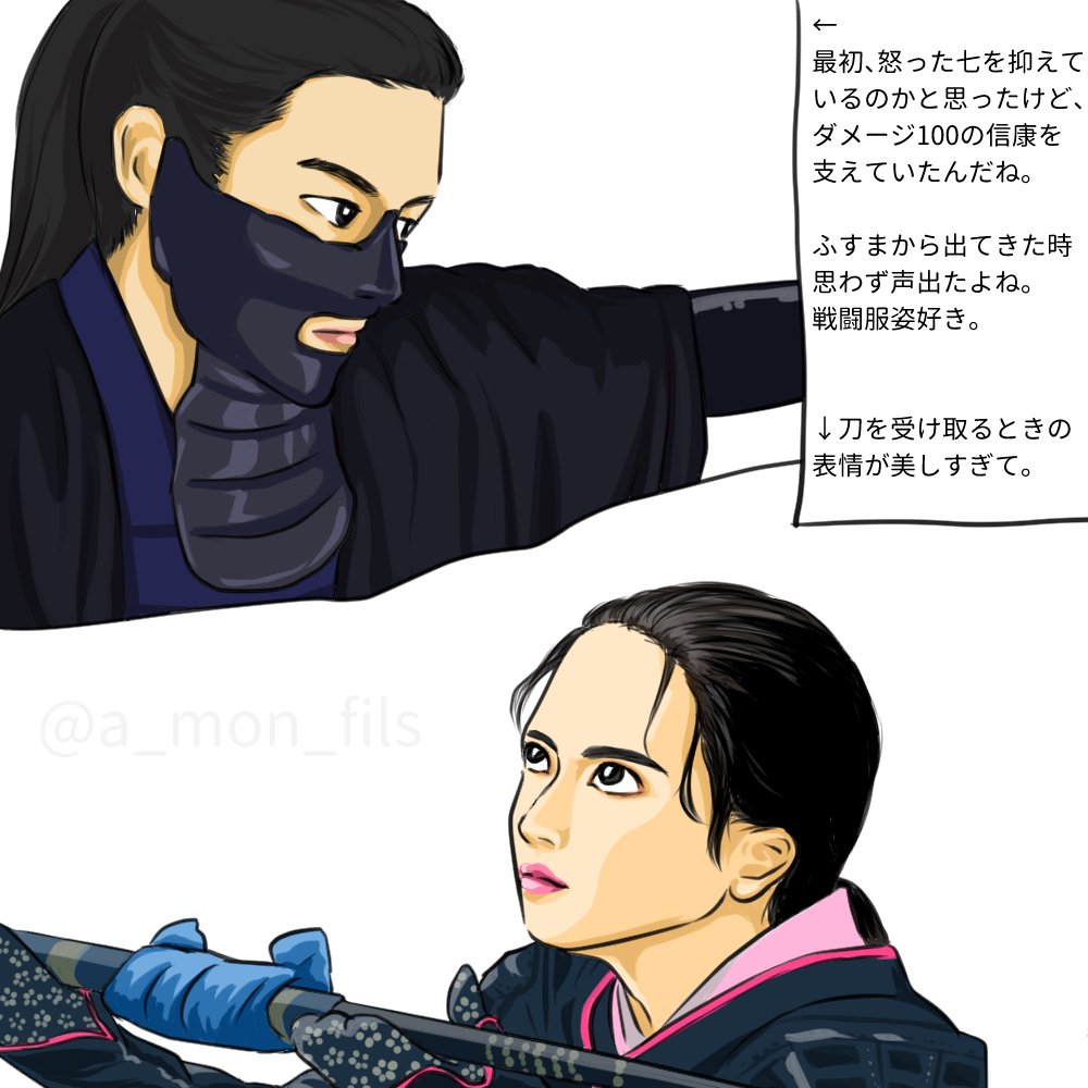 0 1 #どうする家康 20回 ・襖から味方登場しびれた ・弥四郎の言葉にめちゃくちゃダメージ受けてる信康切ない頑張れ ・虎松が刀受け取るシーン美しすぎ何度でも見たい ・世界一怖い『お友達になりましょう?』 造形が美しい2人を描きました! #どうする絵 23/05/30 17:45