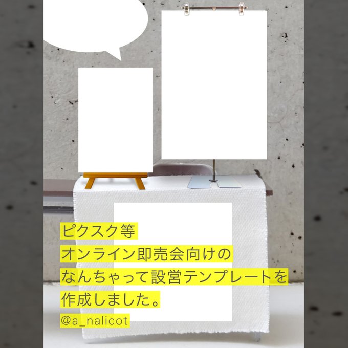 ピクスク向けおしながきデザイン案、たくさん参考にしていただいているようでありがとうございます! BOOTHに ・サークルカット ・設営写真風 ・コピーやネットプリント向けの折本 のテンプレートを追加しましたので、よろしければご利用ください。 nalicot.booth.pm twitter.com/a_nalicot/stat…