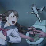 「学校の怖い話 ビジュアル大図鑑 呪の巻」朝里樹監修 宝島社 用のイラスト 7点描いたうち、これがかなりお気に入り。 この絵は構図検討に3DCGは使ってません。 tkj.jp/book/?cd=TD044… #宝島社 #怪談 #学校の怖い話 #学校の怪談 #朝里樹 #illustration #japanesehorror