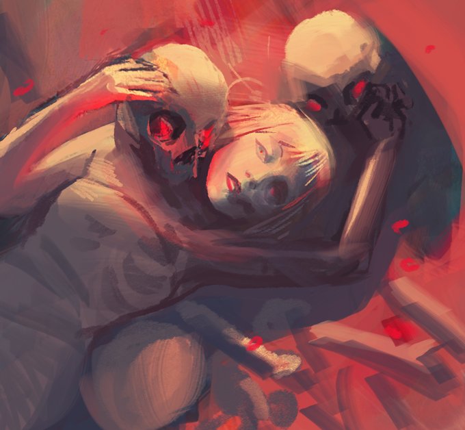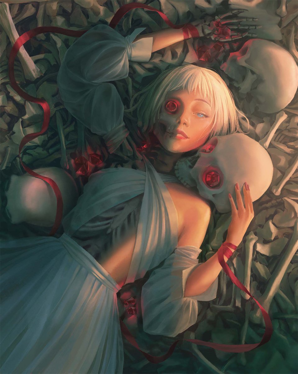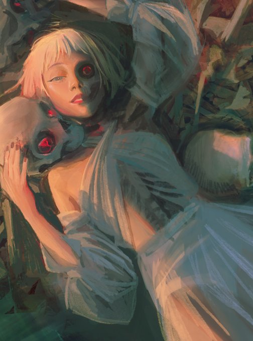 次の作品のアイデアスケッチ💎 idea sketch for next work She has been cursed since tried to get these rubies from the bones...spooky ?😇 #illustration #イラスト