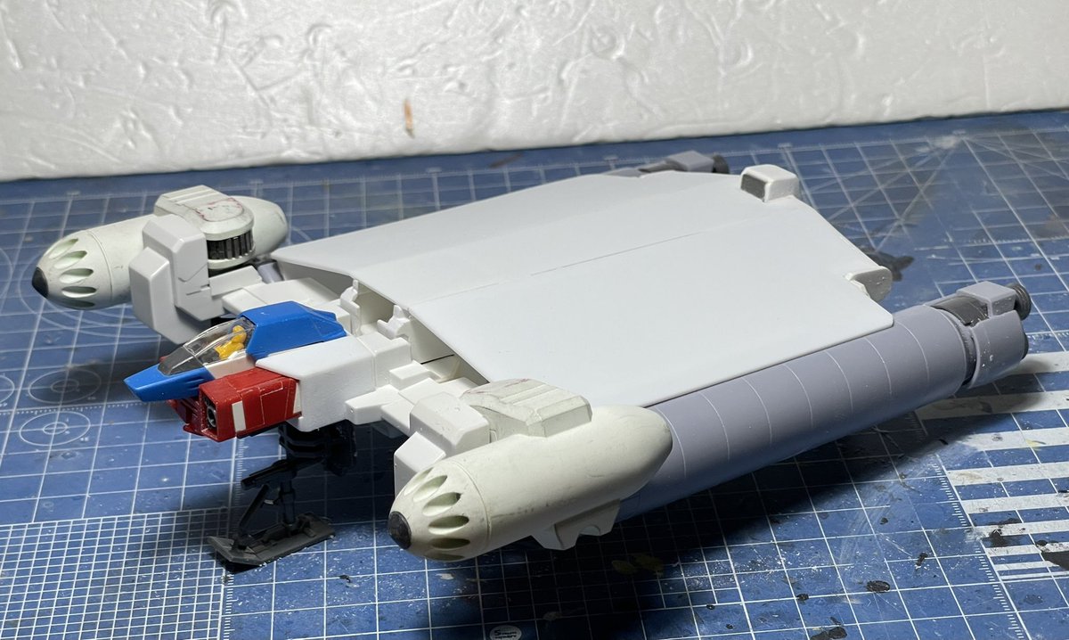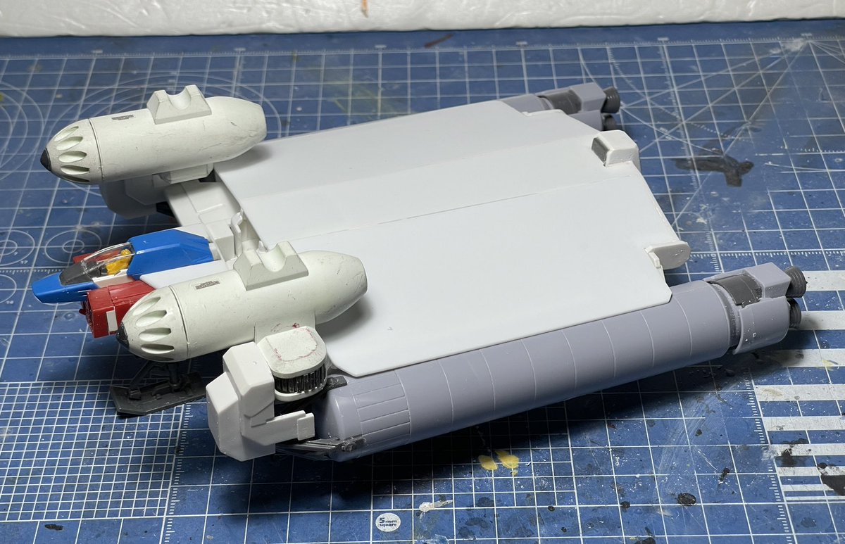 ガンキャノンを懸架運搬する、コアブースター改め、コアキャリアー? スラスター ユニットや外装など、着実に進んできているはず! ランディングギアも脱着可能としました。 #マスターグレード #ガンプラ #ガンプラはどんな自由な発想で作ってもいいんだ
