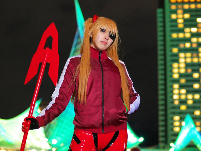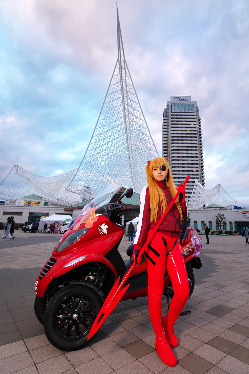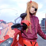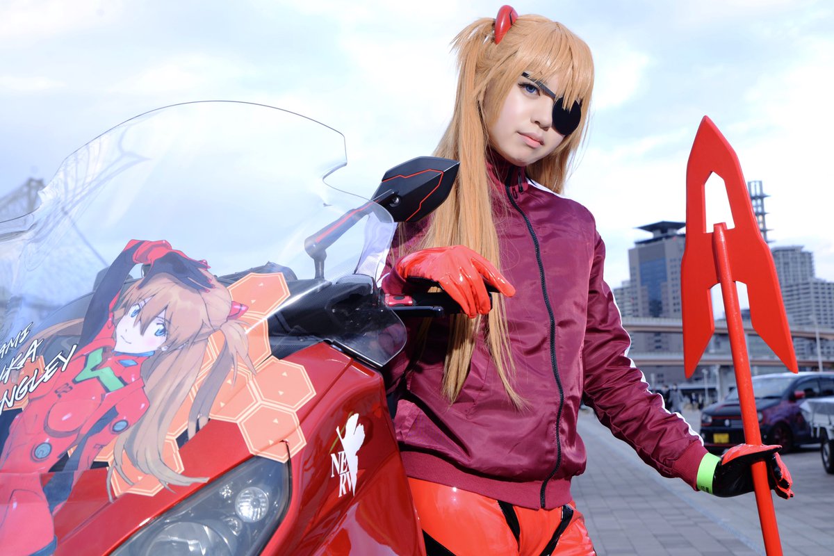 アスカの痛バイクと一緒に📸 痛バイクオーナー様:@giappopazzie 1枚目:あんかけすぱ郎さん(@ankakesparrow ) 2枚目:特殊鋼さん(@spetialsteel ) #かみこす #コスプレ #痛車