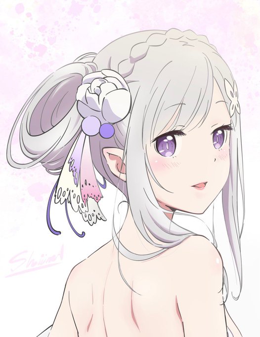 エミリアたん艶っぽいの描けました!肌の塗り方勉強しました_φ(・_・本データはfanboxにて掲載してますのでぜひに→ shiima.fanbox.cc #リゼロ #エミリア #イラスト