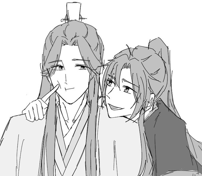 後ろからぎゅーされても満更でもない顔の藍湛がひたすらに可愛い^^ #魔道祖師 #魏無羨 #藍忘機 #忘羡 #mdzs #イラスト