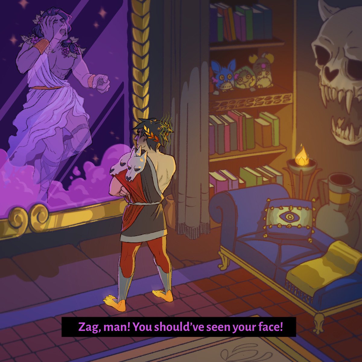 *bubbling laughter and revelry sounds* (You know Dio would find way into the House if only to prank Zag) #hades #HadesGame #HadesFanart #hadesgamefanart #zagreus #dionysus #mirrorofnight