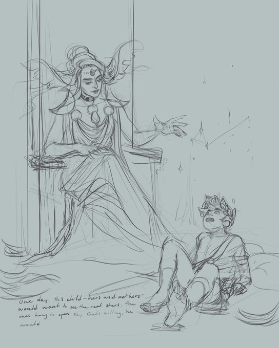 Sketch from earlier this year that I definitely meant to finish and definitely did not #hadesgame #hadesgamefanart #nyx #zagreus #babyzagreus