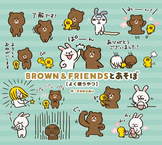 BROWN & FRIENDSのスタンプ、私も作らせていただきました!🐻ブラウン達が大好きな方は是非、見ていただけましたら嬉しいです☺️ line.me/S/sticker/1639… #LINEスタンプ