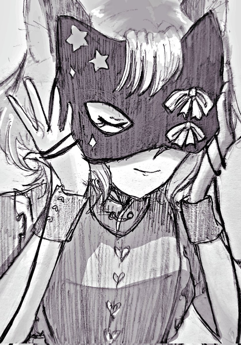 バースデーイラスト全部素敵すぎて目がホクホクだな~! 好き が詰まってる感じがする!! 自分も楽しくって、曲のイメージで沢山描いた!これは個人的お気に入り「転生曲」 印象的なモチーフで仮面が浮かんで、オリジンMV独特のミステリアスな雰囲気になればいいな で出来た!かわいい #VALIS_ART