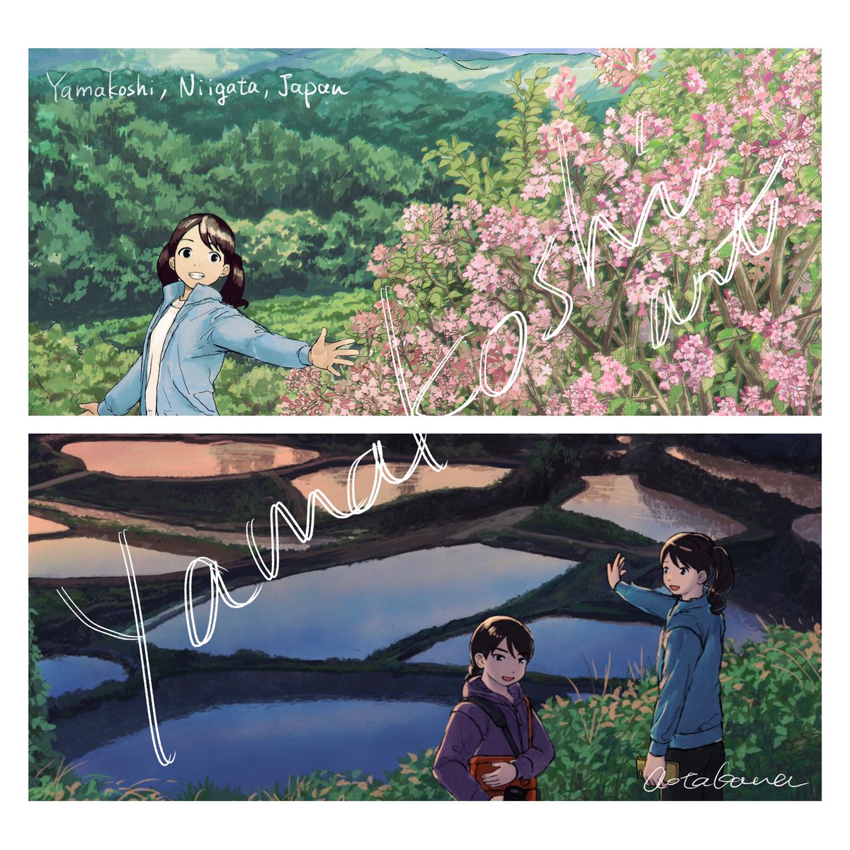 The first Yamakoshi Art in 2023 “Winter 2023 in Yamakoshi ” This is “winter version” of the artwork I drew last autumn. You can snow scene from Orataru. 昨年秋の山古志アートの冬版です。 「おらたる」から見える雪景色を描きました。 #NishikigoiNFT