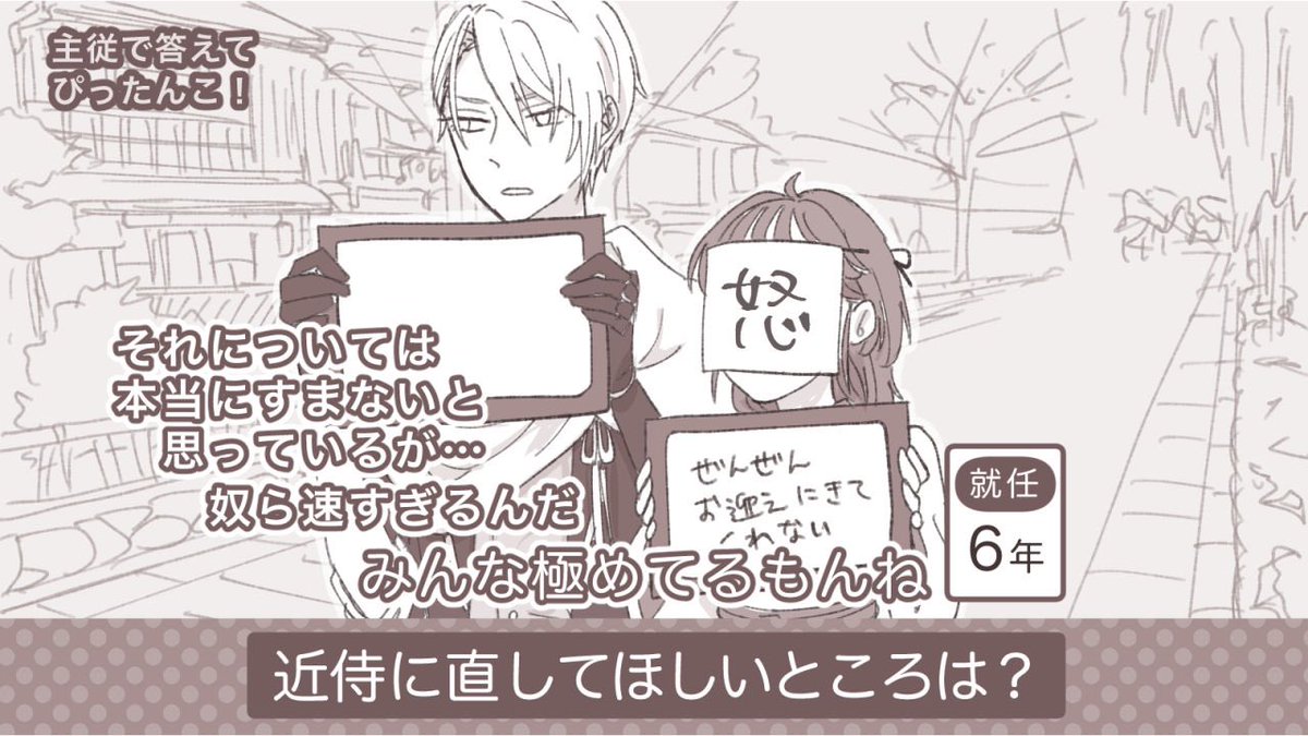 11 77 昨日、“夫婦愛”で同じ答え出せるか街頭クイズをテレビでやってて面白かったので、刀さにで描きました! 他の刀さにやCPでも見てみたい……… 21/12/08 22:56