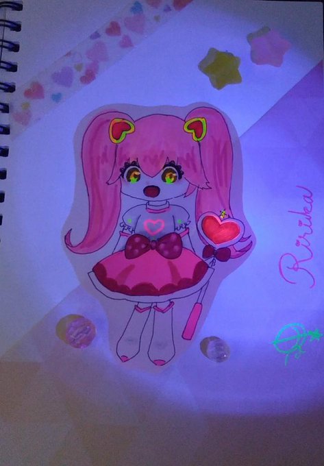 安定の色塗りの雑さです。 蛍光のペンをうまく使えた気がします~。我ながらナイスアイデアでは…!? #コンパスお絵描き