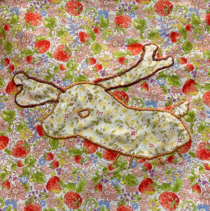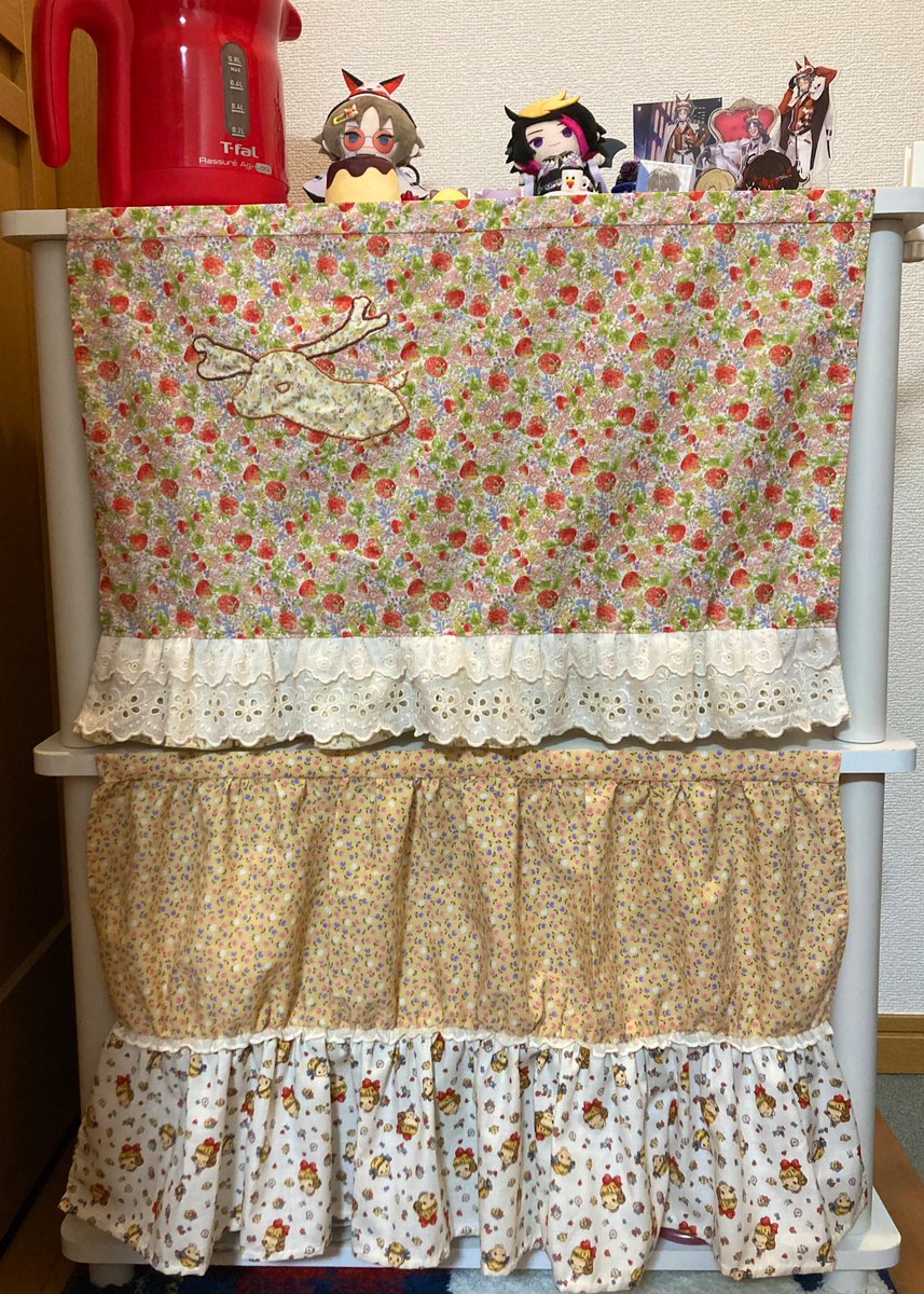 2 59 #YaminoArt #にじさんじ手芸部 シュウくんのヘラジカが 可愛すぎたので🥰 アップリケと刺繍で、 棚にカーテン作りました! 22/10/09 22:50