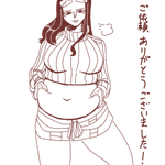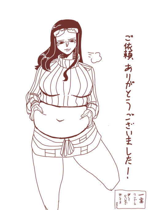 skebありがとうございました! ぽっちゃりしたロビンがおなかをつまんでいる様子です
