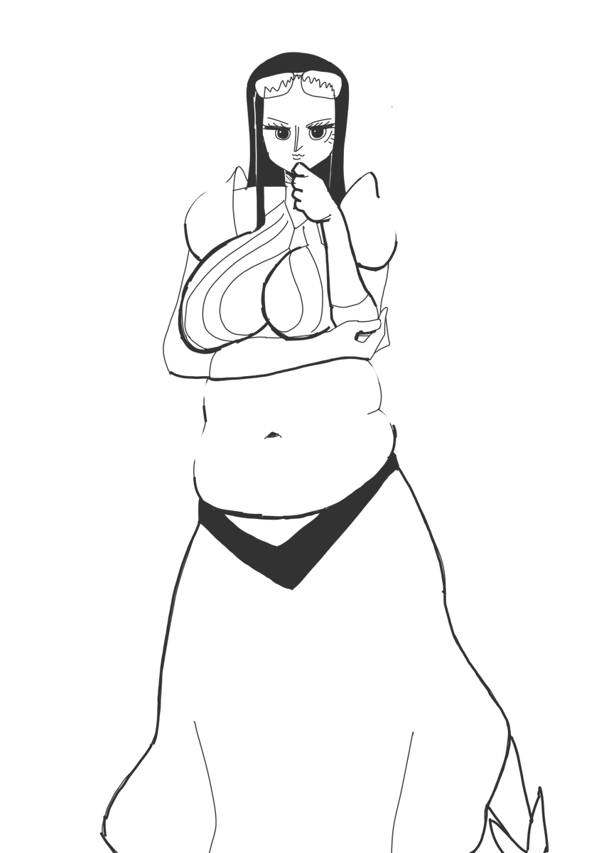 4 22 skebありがとうございました! ぽっちゃりしたロビンがおなかをつまんでいる様子です 23/02/26 21:55