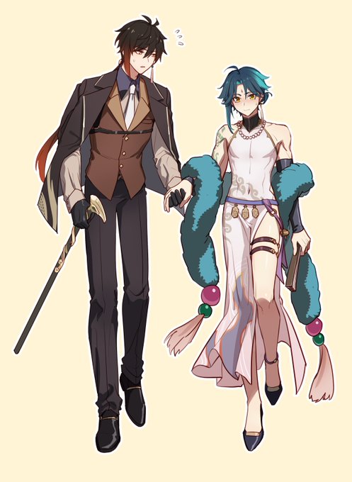 怕魈穿高跟鞋摔着的帝君~ 突发奇想的画了一年前私设的民国夫妻play衣装