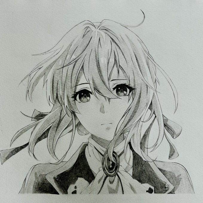 すみません!関係ないハッシュタグが入っていたので再掲です💦 ヴァイオレット・エヴァーガーデンのヴァイオレットちゃん模写しました! #ヴァイオレット・エヴァーガーデン #ヴァイオレットエヴァーガーデン #イラスト #イラスト好きな人と繋がりたい #模写 #アナログイラスト #モノクロイラスト