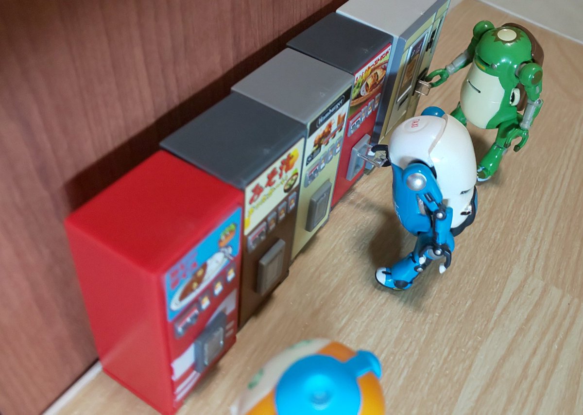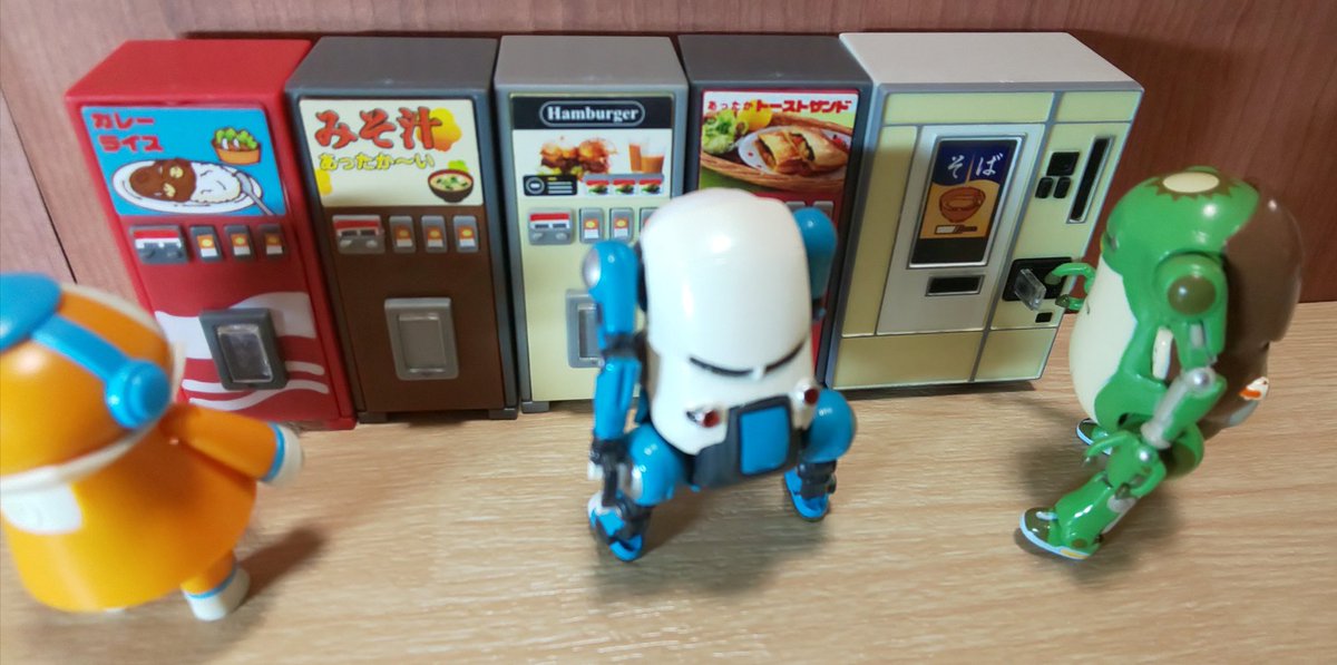 昔、田舎帰るのに寄ったサービスエリアに、こう言う自販機あったなぁ。 ハンバーガー買ったの思い出す。 時間待たされて、熱々のやつが出てくる。 今でも、もちろん有るんだろうけど、そこら辺では見ないよなぁ。 物珍しそうに見てるよ。 #メカトロウィーゴ #メカトロメイト