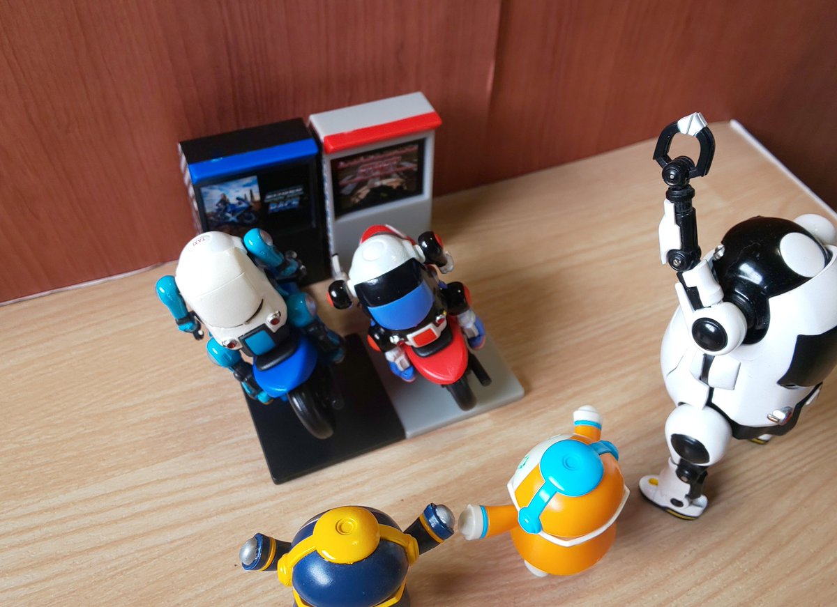 負けられない戦いがそこにある! このガチャのバイクゲーム、タイニーちゃんにピッタリなんですね。 また、ゲーセン筐体増えた。 #メカトロウィーゴ #メカトロメイト