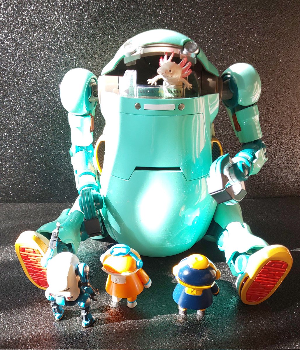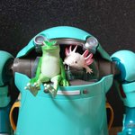 最近我が家に来た、ウーパールーパーくん。 ウィーゴくんに乗りたかったみたい。 先住のかえる先輩とも、相性良いみたいです。 #メカトロウィーゴ