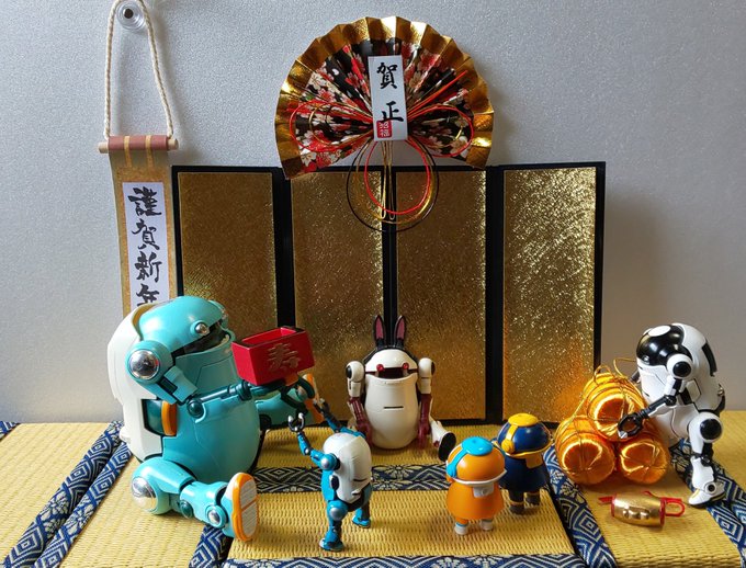 1 6 ウサギウィーゴさんの年。 さっそく祀られてます。 メイトちゃんたち、何をお願いしてるのかな? お年玉貰いに来ただけか。 てきしくん、お酒はまだ早いよ。 賑やかなお正月です。 #メカトロウィーゴ #メカトロメイト 23/01/01 08:20